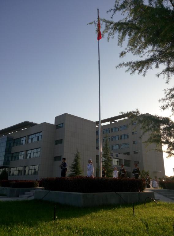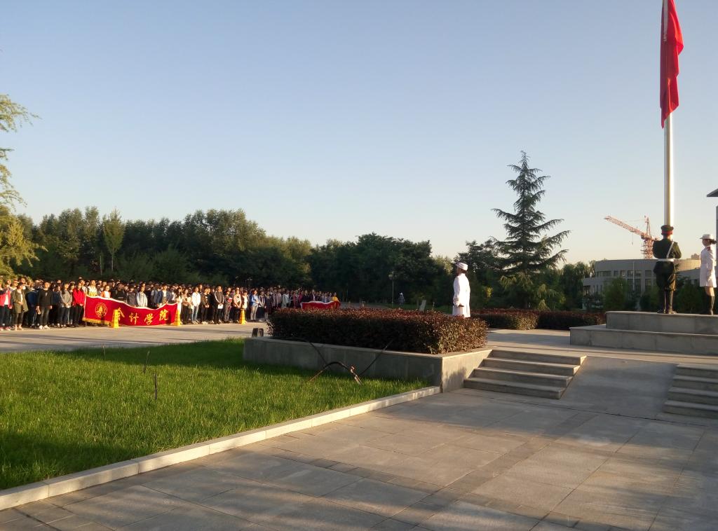 7:20学院参加升旗仪式的全体成员已全部到场,静静地等待五星红旗的升起。阳光穿透云层,为肃穆的国旗台镀上了一层金辉。7:25分,国旗班护送着鲜艳的五星红旗,身着整洁的礼服,迈着矫健的步伐,庄严地走来。7:30分,雄壮的国歌奏响,国旗迎着朝阳缓缓升起,全体成员行注目礼。看着国旗迎风飘举,每个人都无比的骄傲和自豪,涌起对祖国无限热爱,激发了所有成员的斗志。