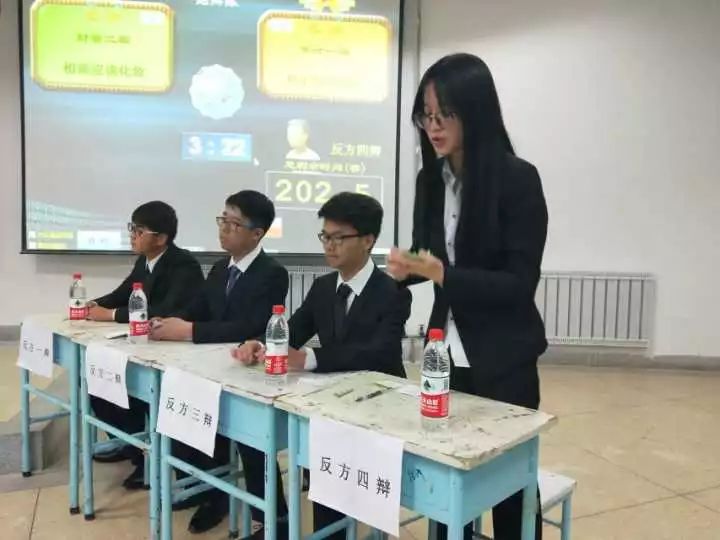 在短暂的休息后,第二场比赛也正式拉开帷幕。这一场比赛中正方辩相较于追逐理想,大学生更需要认清现实话题进行辩论,而反方辩手也就相较于认清现实,大学生更需要追逐理想进行反击。